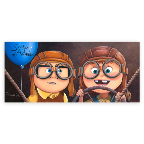 The young Ellie and Carl playfully act out one of the exciting trips they plan to go on together when they're older in this delightful work by Michelle St.Laurent. Inspired by Disney and Pixar'sUp, ''Adventure Awaits'' is a limited edition giclee on gallery wrapped canvas.
