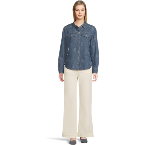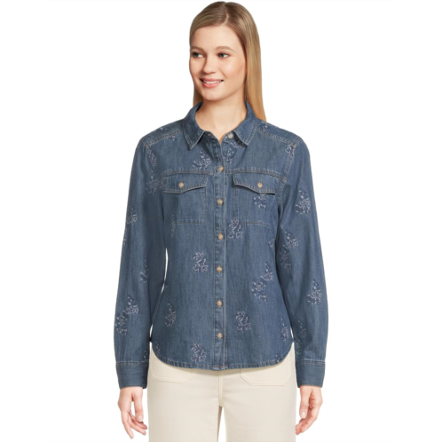 [US] Womens Tommy Bahama Flora Embroidered Denim Long Sleeve Shirt
