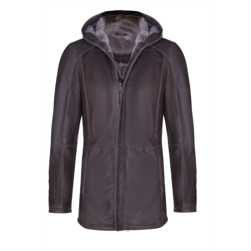 [US] Infinity Leather mens sheepskin hooded parka coat-alafaya