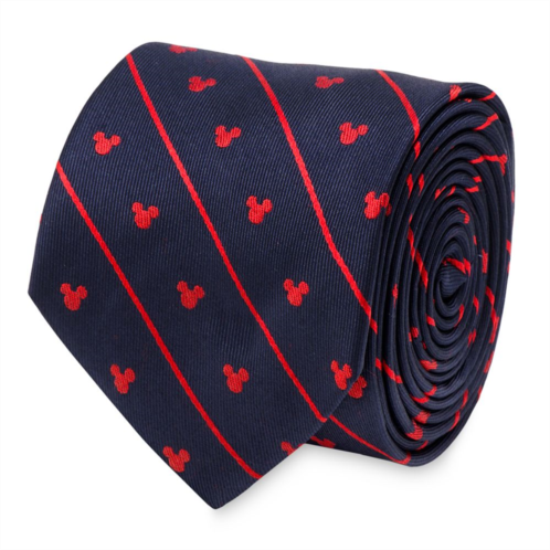 Make a Mickey fashion statement in this classic silk tie featuring a pattern of Mickey icons and diagonal pinstripes. The contrasting red and navy blue colors make it a versatile option for different suits.
