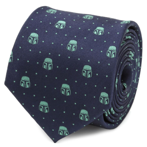 A woven green Mandalorian helmet pattern offers a handsome contrast to the blue of this silk tie, making an epic style statement. The tuck loop in back features theStar Warslogo.