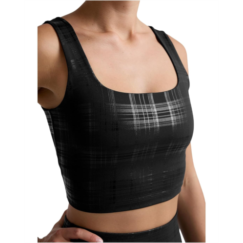 - Bring the bold wherever you move in the crop tank with a built-in bra made from soft stretchy, Plaid Foil, that has a hint of shine. Style the Beyond The Studio High Cropped Tank with the matching pair of leggings or mix it up with a solid pair.