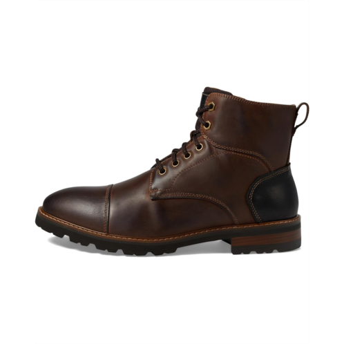 The Florsheim Renegade Cap Toe Lace Up Boot has a modern appeal thanks to its mix of colors on the upper, stacked heel, and striking lug outsole. The versatile style means it can be worn for work and weekends alike.