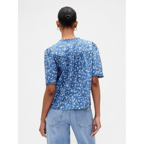 - Short puff sleeves with lace trim.