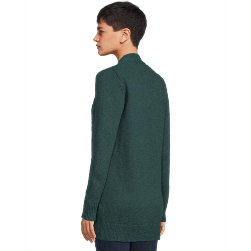 - Longline sweater features full-length sleeves, front patch pockets, and ribbed trim at cuffs and hem.