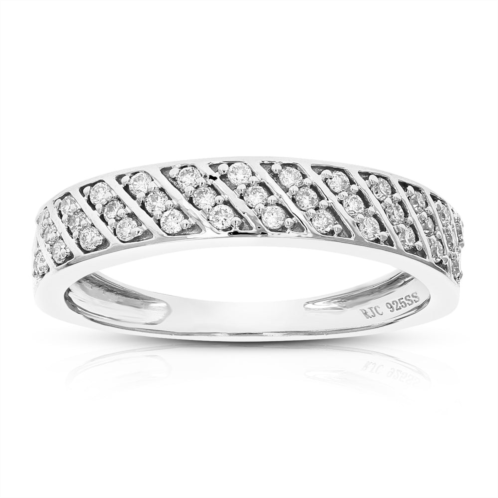 Diamonds are a traditional choice when it comes to wedding bands. And what better than a lab grown diamond that has the same chemical, optical and physical properties, crystal structure and hardness as a natural diamond. Lab grown diamonds are a responsible choice since no mining is required and are just as valuable as natural diamonds. The sterling silver in the lab grown diamond wedding band is a very durable metal that stays shiny for a long time. The diamonds in the wedding band perfectly complement the sterling silver metal that has always been on the forefront of fashion.The sparkling 35 diamonds are mounted in a prong setting that securely hold the diamonds and accentuates their brilliance. Prong setting ensures that diamonds are visible and well supported, thereby offering a balance of style and durability. You can accessorize this 1/4 cttw wedding band with any outfit and elevate your style. Charismatic and chic, the wedding band looks nothing less than perfect. we have a 30-days easy return policy. The gorgeous wedding band comes in a beautiful jewelry box. Committed towards making unique jewelry, we design what you demand.