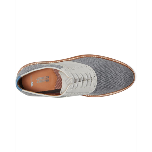 The trendy color-block aesthetic and sleek round-toe silhouette make the Johnston & Murphy Upton Knit Saddle Sneakers a perfect choice for casual or semi-casual occasions. These lace-up sneakers are crafted with a knit and full-grain leather upper, partially recycled leather & polymesh lining that prevents build-up of microorganisms, and a removable, contoured rubber footbed with memory foam. The high-rebound, ultra-light TRUFOAM midsole is added for cushioning and comfort. Plus, the flexible, TRUFOAM EVA outsole with rubber pods provides lightweight, cushioned comfort.