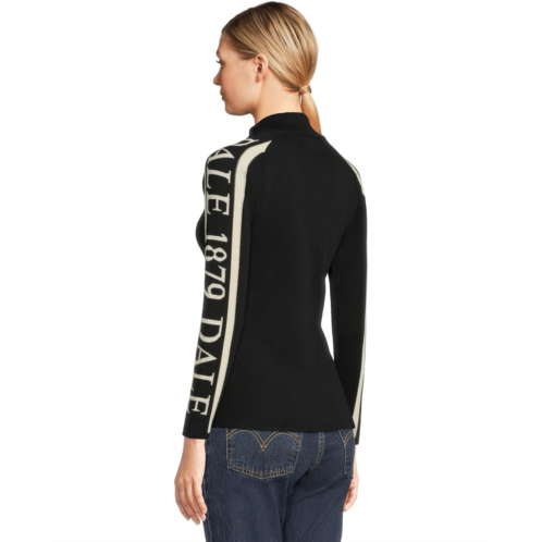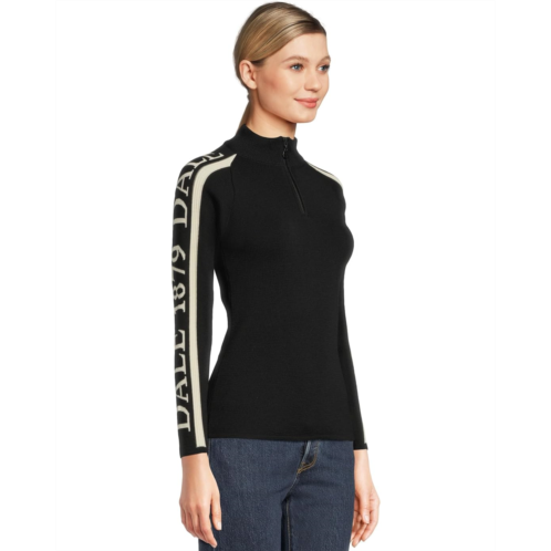 - The Dale of Norway Skarstind 1879 Feminine Sweater is a soft and sporty sweater with contrast-colored long sleeves, clean lines, and a semi-high neckline with a zippered front closure. Double layers of soft Merino wool knitted together with a flexible thread to provide a pleasant stretch effect and a highly durable fit. This mid-layer sweater can also be used as a next-to-skin sweater. It can easily be styled with the brand's weatherproof vests. The text 'Dale 1879' is boldly knitted into the sleeves overarm. 1879 refers to the year the brand's adventure started.