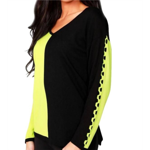 [US] ANGEL color block v-neck with detail sleeve in black/kiwi