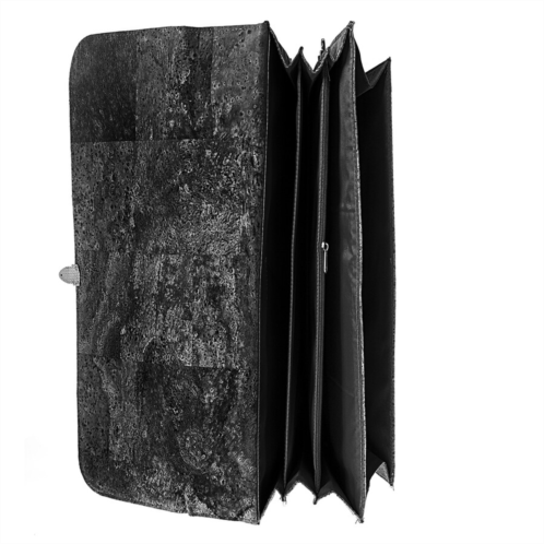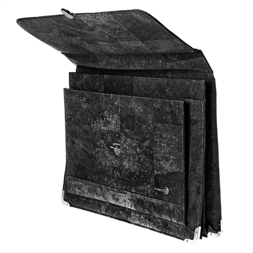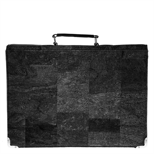 Material Outer Cover 100% Natural Cork Hypoallergenic and Easy to Maintain. It Is Soft to the Touch; Yet Withstands Rugged Use Size: 16.25 Inches in Width; 12 Inches in Height One Front Outside Pocket With 2 Open Pockets That Are 13 Inches Wide and Opens 1.5 Inch Closure Push Button Metal Clasp Backside: One 12 Inch Zipper Sleeve 6 Inches Handle on Top; Securely Stud Bolted to Case and Machine Stitched with One Metal Ring to Hold Multi-Weaved Nylon Strap for Shoulder Carrying Use Metal Lobster Clasp to Adhere to Briefcase Interior Hidden Structured Nylon for Strength Interior: 4 Large Open Pockets for Laptop Computer or File Paperwork. 2 of the Pocket Has a 12 Inch Zipper Closure One Open Pocket Has a 10 Inch Interior Zipper Pocket. Second Open Pocket Has a Holder Mobile Phone and a Holder for Pens Machined Stitched. No Glue. 100% natural cork.