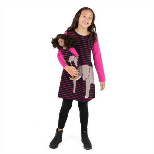 [US] Leveret girls and matching doll cotton dress elephant