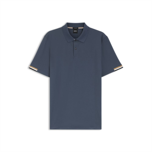 A modern polo shirt detailed with signature stripes by BOSS. Crafted in pure-cotton pique with a mercerized finish, this short-sleeved polo shirt is trimmed with a tonal BOSS logo.
