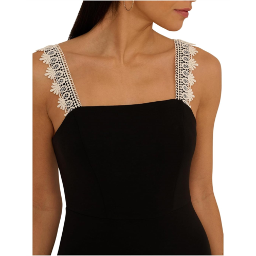- Indulge in effortless style choosing the Adrianna Papell Knit Crochet Trim Dress! Crafted with a square neckline and a sleeveless design, this dress exudes sophistication and charm. The stretch knit fabric contours your curves beautifully, while the crochet border trim adds a touch of elegance. It's the ideal day-to-dinner option, seamlessly transitioning from casual brunches to elegant weekend events and special occasions.