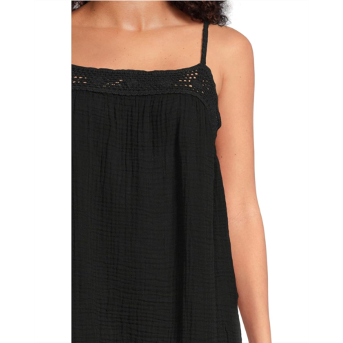 - The Michael Stars Emree Mini Dress is curated to show off elegance, style, and sophistication. The pull-on style mini dress features a flattering square neckline, spaghetti straps, a crochet trim, and a flowy above-the-knee silhouette.