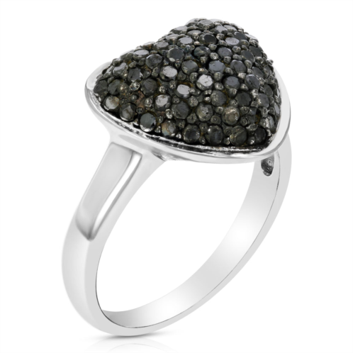 [US] Vir Jewels 1 cttw black diamond heart ring .925 sterling silver with rhodium plating