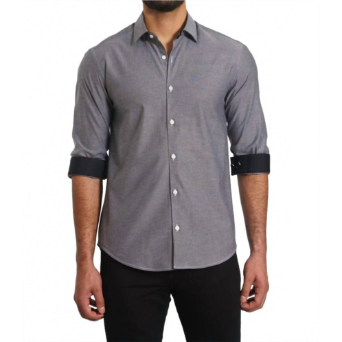 The Long Sleeve Shirt by Jared Lang is a modern must-have in stylish grey, crafted from 100% Pima Cotton for a comfortable fit. Featuring a semi-fitted design with a button closure, this shirt stands out with its unique contrasting stitching and trimming on the collar and cuffs. Perfect for a dinner party or casual outings, it brings an on-trend edge to any ensemble. Care for this piece with a delicate wash and lay flat to dry.