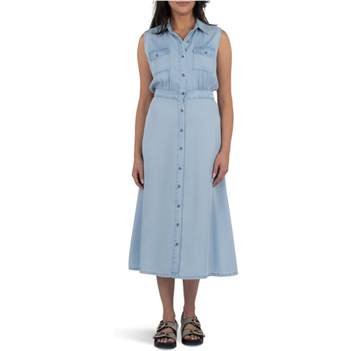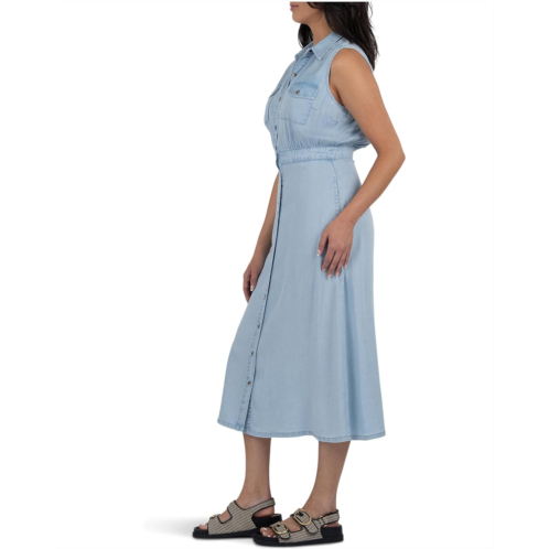 - Get ready to turn heads donning the KUT from the Kloth Dorothy Button Down Dress! This sleeveless style dress features a collared neckline with button-down front closure, making it easy to slip on and go. The shirred waist gives you a flattering fit, while the two button-flap chest pockets and two side seam pockets add a touch of functionality.