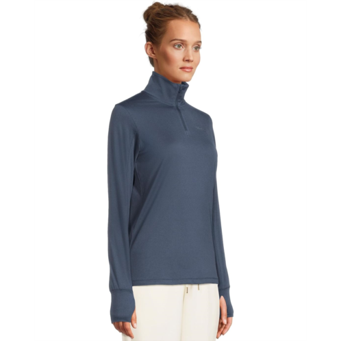 - Flow Half-Zip Long Sleeve for Women is a soft and functional half-zip jersey that excels as both a baselayer and a standalone garment for running, training, powerwalking and similar physical activities. This multi-purpose half-zip jersey is made from a functional blend of recycled polyester and elastane, with a subtly peached surface for a soft feel. The long-sleeve jersey also features a slightly more relaxed fit than traditional tight-fitting baselayers, enhancing versatility and adaptability. Wear it solo or layer under a jacket or mid-layer shirt for added insulation in colder conditions.