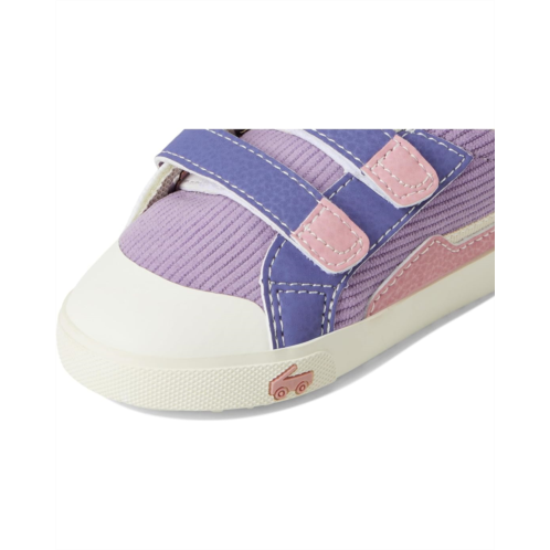 Hit the playground in style wearing the must-have See Kai Run Riley sneaker. A fun mix of fabrics and colors on the outside team with recycled, breathable mesh lining on the inside to create a pair that's comfortable, classic, and downright cool. The shoes feature a natural rubber outsole with a herringbone lug pattern that provides great traction for play while a generous toe box provides room for healthy foot development and double reverse hook-and-loop strap closure with faux elasticized laces allow for secure fit and custom. adjustability.
