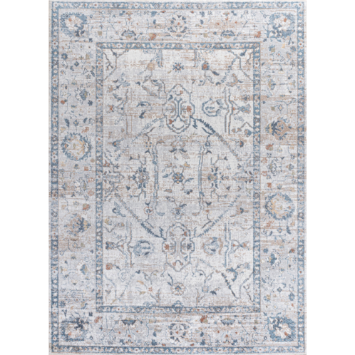 [US] Jonathan Y brandy rustic border low-pile machine-washable light gray/blue area rug