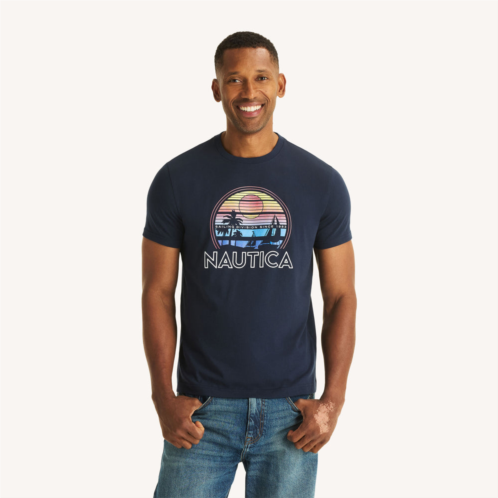 Set sail on your off-duty days wearing this short-sleeve t-shirt. It's made from soft, Sustainably Crafted cotton jersey and features a nautical sunset print at the front.