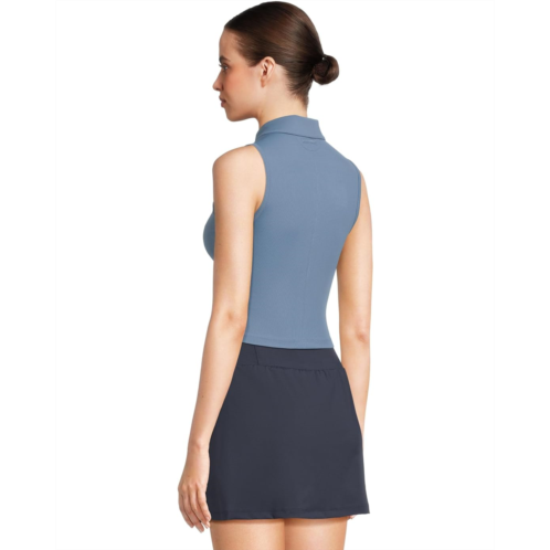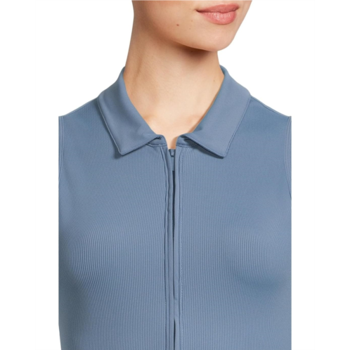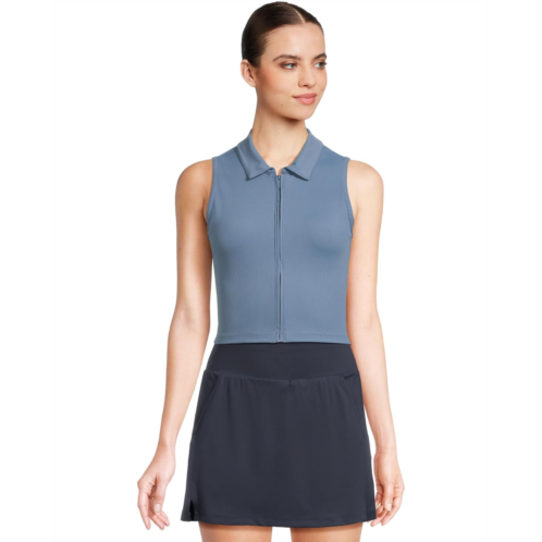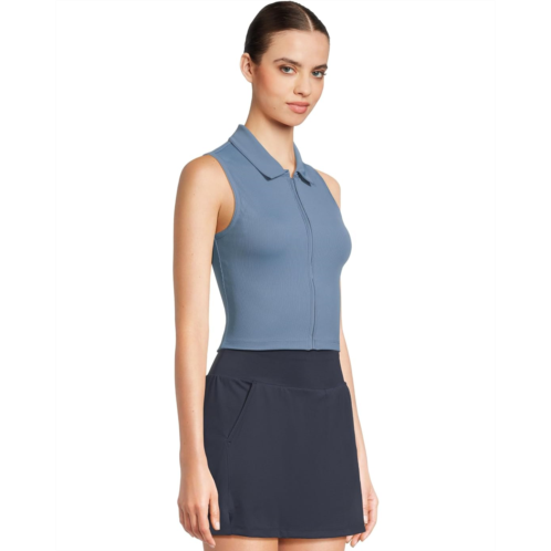 - Full-zip ribbed sleeveless polo.