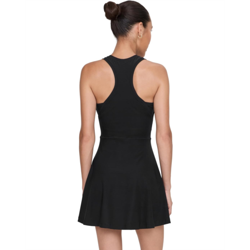 - Made with super-smooth, ultra-stretchy fabric that dries quickly, this Nike Dri-Fit Victory Dress makes it easy to focus on your swing. Ribbed panels under the arms stretch through your full range of motion. It features round neckline, racerback style, sleeveless construction, and is intended to hit above the knees.