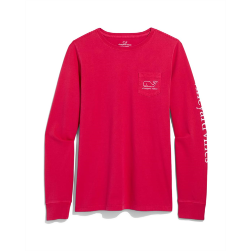 - Slay the style game wearing the Vineyard Vines Garment-Dyed Vintage Whale Long-Sleeve Pocket Tee. The pull-on style tee features a ribbed crew neck, long sleeves, a patch pocket at the left chest, and a straight hem. The graphic print on the pocket, sleeve, and back adds an exquisite touch.