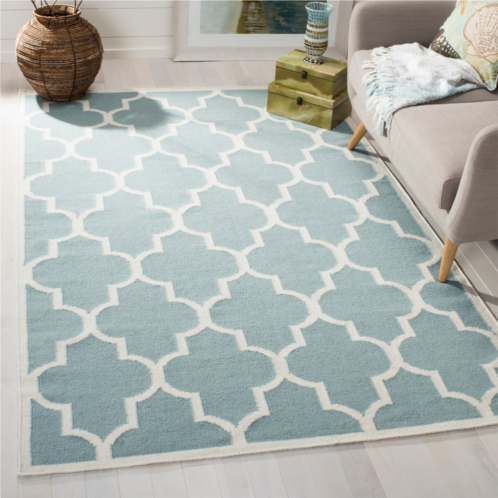 [US] Safavieh dhurries hand made area rug light blue / ivory contemporary style non shedding