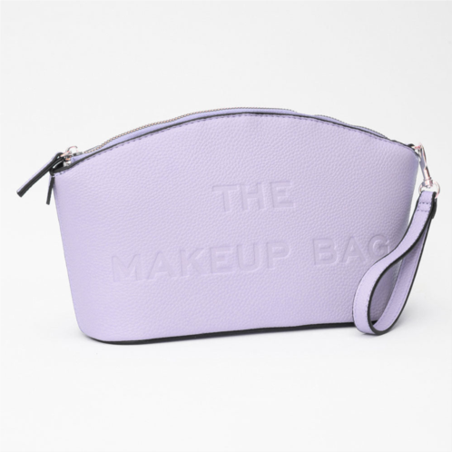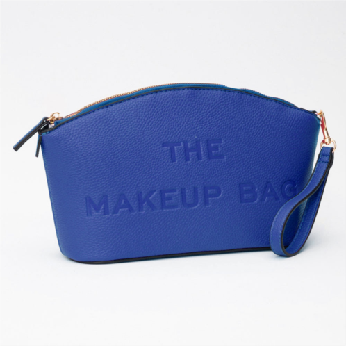 Size - 10' X 6.25' X 3'Zipper ClosureStrap Size - 7.5' L / DetachableStay organized in style with this vibrant colored makeup bag featuring embossed “THE MAKEUP BAG” text, a secure zip closure, and a convenient wrist strap. Made of durable faux leather perfect for travel or everyday use.
