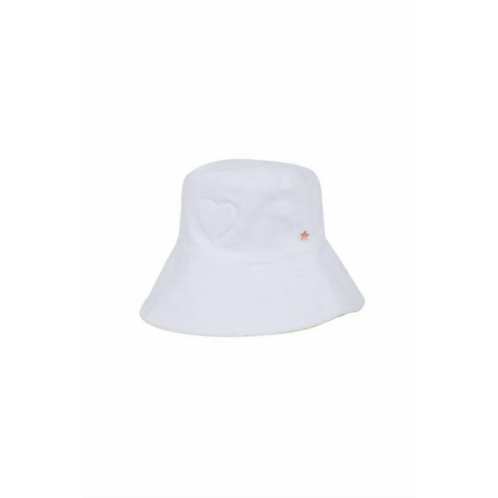 Block the sun in style with this adorable hat that will complement any outfit. Expertly crafted to elevate your style while providing a delightful touch of personality.Introducing the Women's Santorini Bucket Hat by jocelyn, a stylish and versatile accessory ideal for sunny days. This bucket hat is crafted from soft terry cloth and features a charming heart imprint. The white hue adds a touch of elegance, making it a perfect addition to any ensemble. Embrace this chic piece for ultimate sun coverage with a fashionable twist.