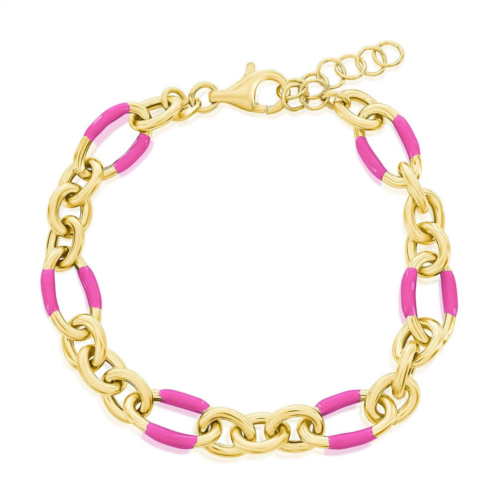 Sterling Silver, Rose Violet Enamel Bracelet - Gold Plated