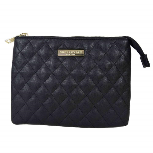 An instant favorite! This Suzy Levian faux leather quilted small clutch will be your go-to clutch season after season. This clutch is the ideal carry-along for a night out or a quick run to the shops. It has just the right amount of room for all of your must-haves including that very necessary second lipstick just in case. You can always count on Suzy Levian's designs for practicality combined with elegance and class.A double quilted lining on the inside of the bag gives extra cushion protection to make sure all your valuables are kept safe and protected.A Suzy Levian gold plaque sits on the front center of this clutch, making sure the world knows you are carrying a top of the line, high-end quality, designer bag. Perfectly handcrafted, this bag will be delivered to you in a custom dust bag for safe keeping. Features - Secure top zipper closure.Matching gold hardware across the bag.This bag is offered in four color options - BLACK - Black faux leather exterior and interior with gold hardware.RED - Red faux leather exterior and interior with gunmetal black hardware.PALLADIUM - Silver with a tint of gold faux leather exterior and interior with gold hardware.NAVY - Navy faux leather exterior and interior with gold hardware.