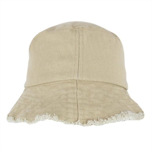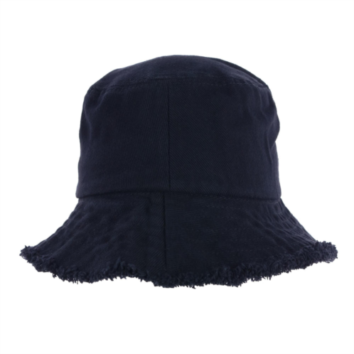 This casual denim bucket hat is perfect for pairing with an everyday attire. The frayed edges add a touch of style and the interior band makes the hat more comfortable.
