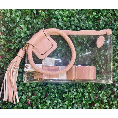 [US] MiMi Wholesale clear wristlet with cuff handle & tassel in blush