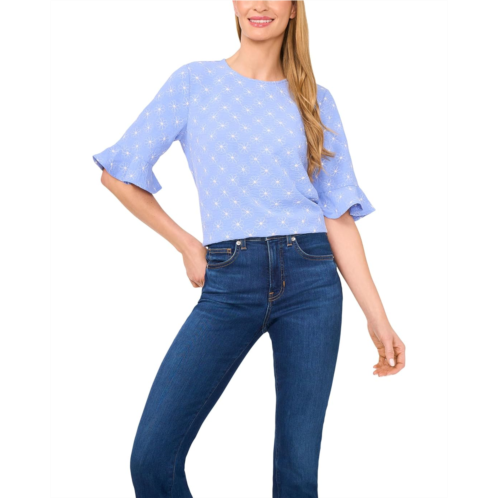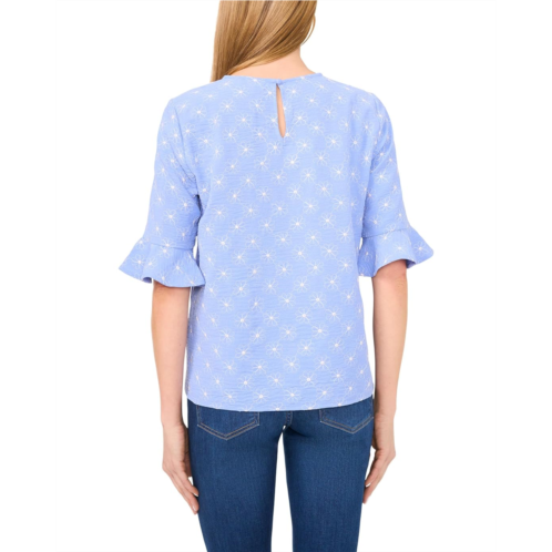 [US] Womens CeCe Ruffle Cuff Embroidered Crew Neck Top