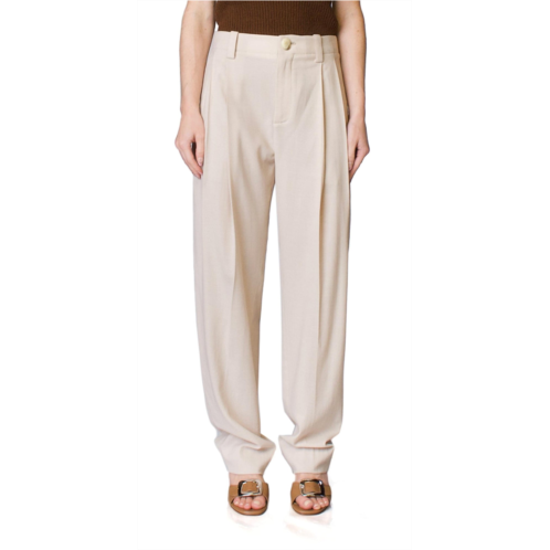 A hint of menswear is found in Vince'sinstantly polishedtapered pant, creased in frontcreating a long, fluid line.Details -Color - Pale Fawn. 99% wool, 1% spandex. High rise fit. Zip and button fly closure. Long, relaxed leg. Fits true to size. Model is 5' 5' and is wearing a size 2