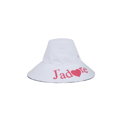Block the sun in style with this adorable hat that will complement any outfit. Expertly crafted to elevate your style while providing a delightful touch of personality.With the Jocelyn Women's Cannes Hat, embrace your love for sunny getaways with style. This wide-brim hat adds a pop of color to your beachwear with a bold pink 'J'adore' and offers versatile wear in white and yellow hues. Enjoy the added benefit of its reversible design, tailoring your style to the occasion. Your ultimate sun-shielding companion, perfect for infusing a touch of glamour into your sunny adventures.