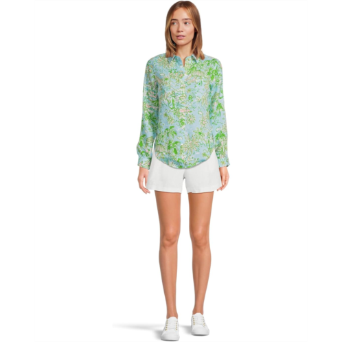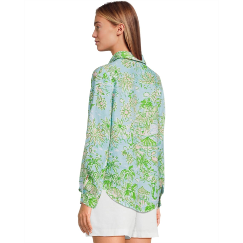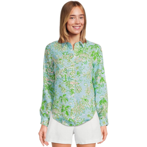 - The Lilly Pulitzer Sea View Button-Down is a wardrobe staple. Pair this long sleeve linen button down shirt with printed shorts for a casual look or dress it up with an elegant white pant. Constructed from breezy linen with an easy fit.