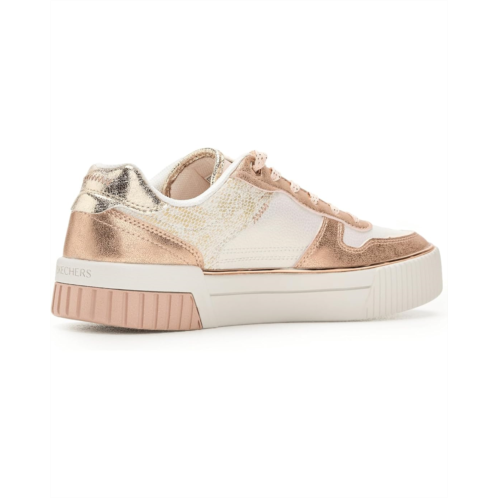 - Stellar vibes and standout details combine in the stylish Skechers Jade Luminous Spark. This low-top court style features an iridescent Duraleather upper with a metallic overlays, a lace-up front, and a cushioned Skechers Air-Cooled Memory Foam comfort insole.