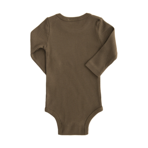 Brownlong sleeved gender neutral modal bodysuit for babies from BANBLU, featuring a soft and comfortable cotton modal blend, round neck, long sleeves, withshoulder and lowerbutton closure.
