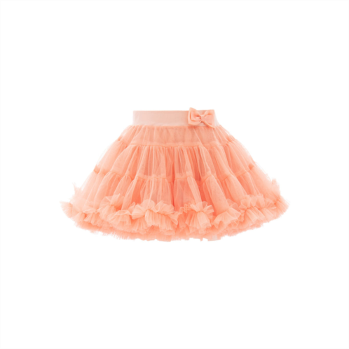 Orangepeachbowtutu skirt for kid and baby girls from Mimi Tutu, featuring a poofy tulle design inpeach andmatching bow at the elasticated waistband.