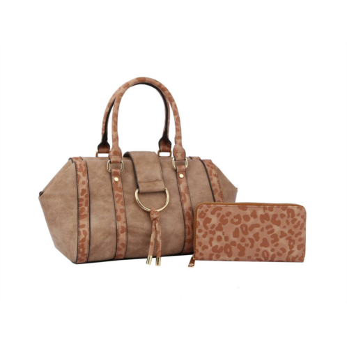 [US] Handbag Factory Corp womens duffle satchel bag with wallet crossbody strap in leopard stone