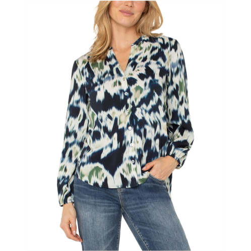 - The Liverpool Los Angeles Long Sleeve Button Front Shirred Woven Blouse is an eye-catching piece with vivid hues. Its versatility allows it to be dressed up or down to create the perfect ensemble for both casual and professional occasions.