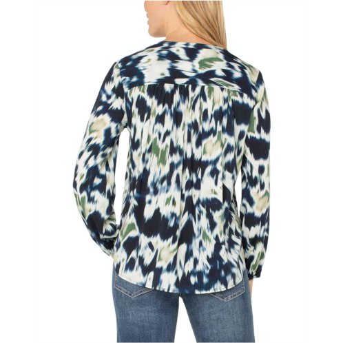 [US] Womens Liverpool Los Angeles Long Sleeve Button Front Shirred Woven Blouse