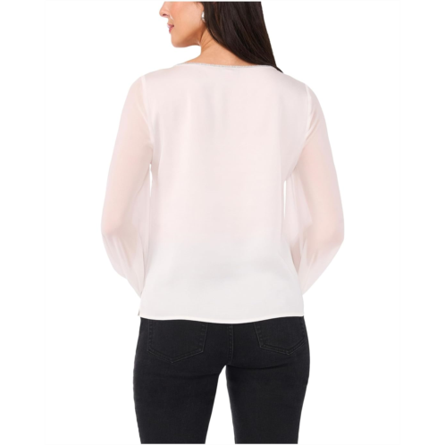 [US] Womens Vince Camuto V-Neck Chiffon Sleeve Blouse w/ Rhinestone Trim