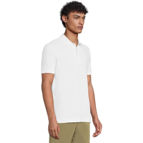 - Polo crafted from a unicolor stretch cotton pique.