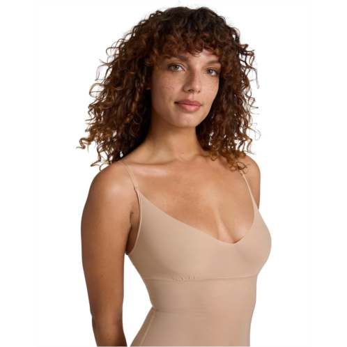 - Slip into effortless ease wearing the Commando Featherlight Control Full Slip. It features scoop neckline, raw-cut hem, bust shirring, adjustable straps, and pull-on style.