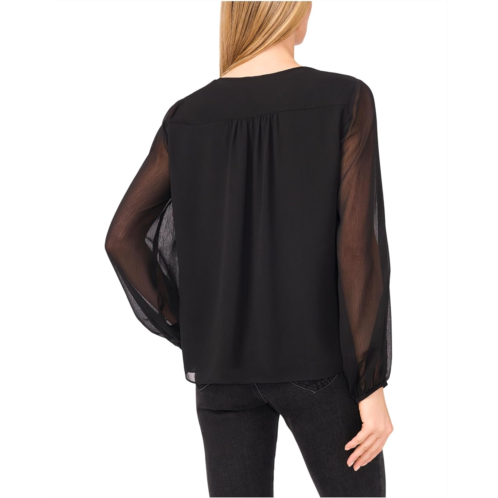 [US] Womens CeCe Long Sleeve Tie Neck Top