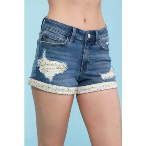 Not only cute but extremely comfortable. The jean shorts you will be reaching for all season long.Introducing the Flower Patch Hem Shorts by Judy Blue, perfect for adding a touch of floral flair to your casual wardrobe. These blue jean shorts are designed with a high waist and feature an inseam of 3 inches for a modern fit. With practical pockets and a charming floral pattern, they make for a stylish and functional piece.